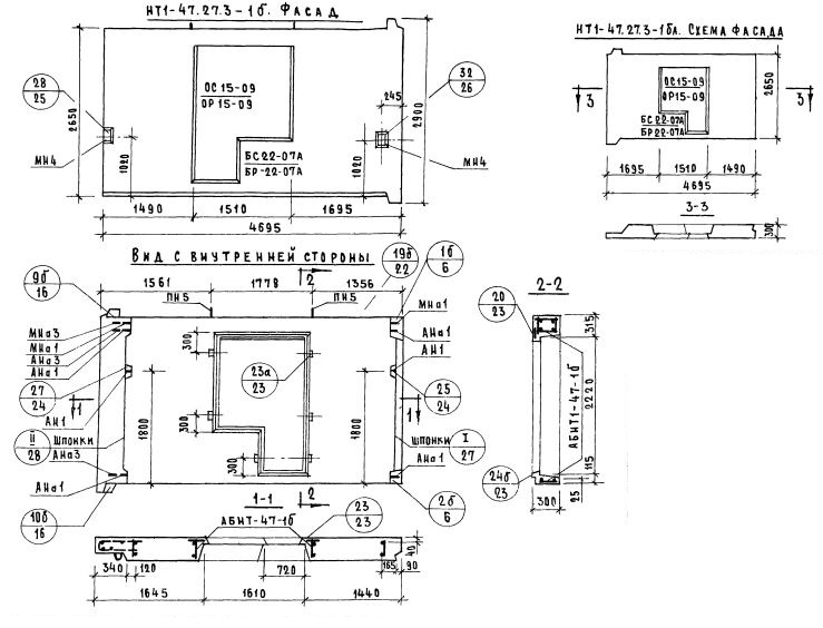НТ1-47.27.3-1б   Наружная стеновая панель торцевая по Серии 1.132-1.