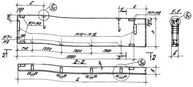 ПС 650.12.25-я-91 Парапетная панель-перемычка при простенках длиной 1,5м для углов и температурных швов.